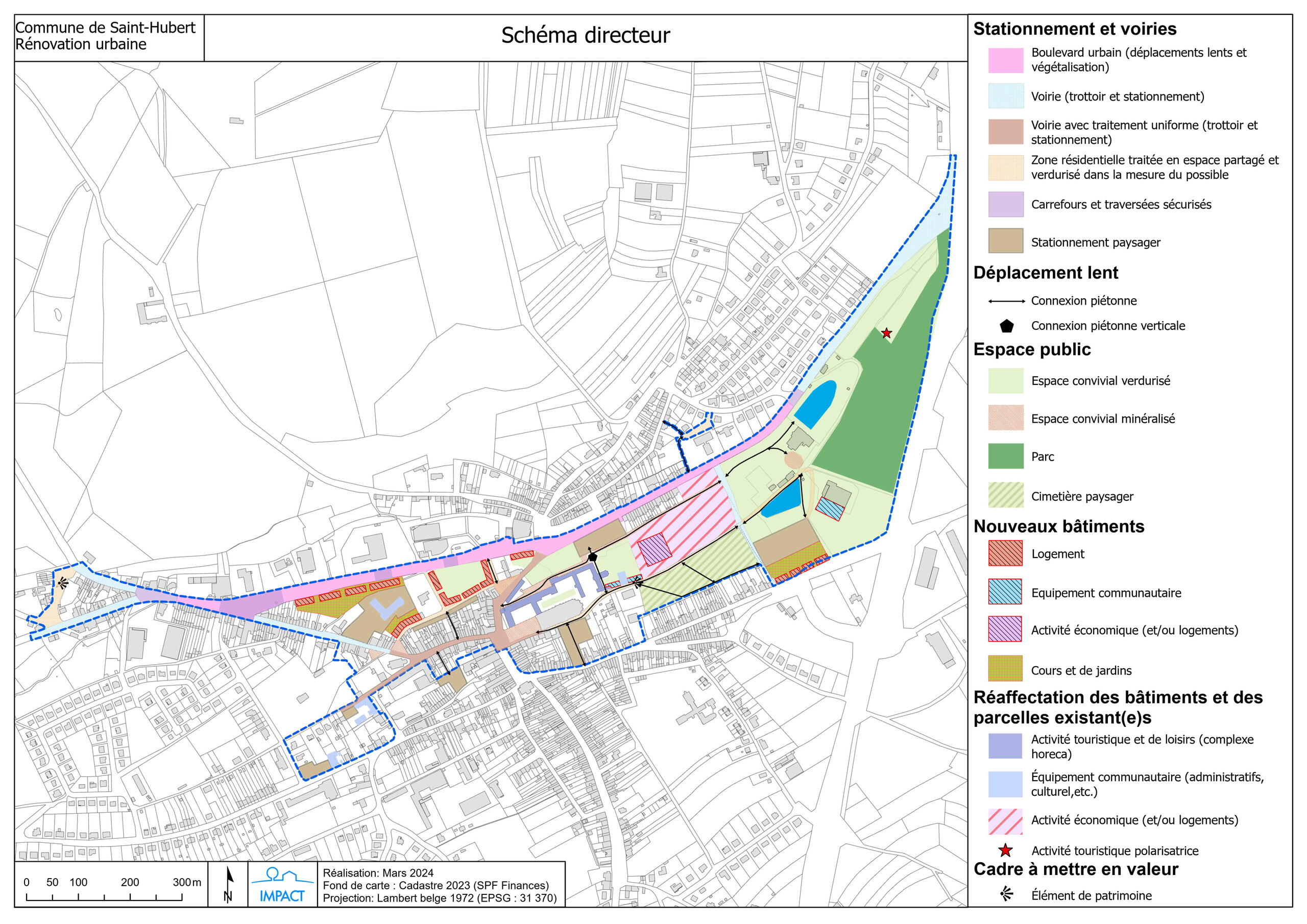 Au-delà de la restructuration d’un quartier, l’opération de rénovation urbaine vise également à dynamiser la vie économique et commerciale, à pérenniser les équipements et les services, à sauvegarder le patrimoine historique, et à valoriser les dimensions culturelles et touristiques. Elle doit ainsi permettre à Saint-Hubert de retrouver le rôle polarisant qu’elle doit jouer à l’échelle de la micro-région, en complémentarité avec le pôle principal de Libramont-Chevigny.